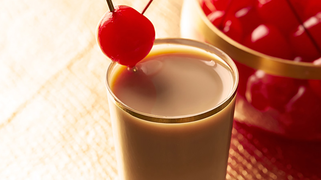 Garnish with a cherry.