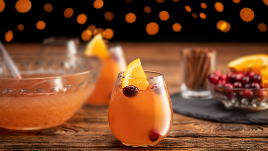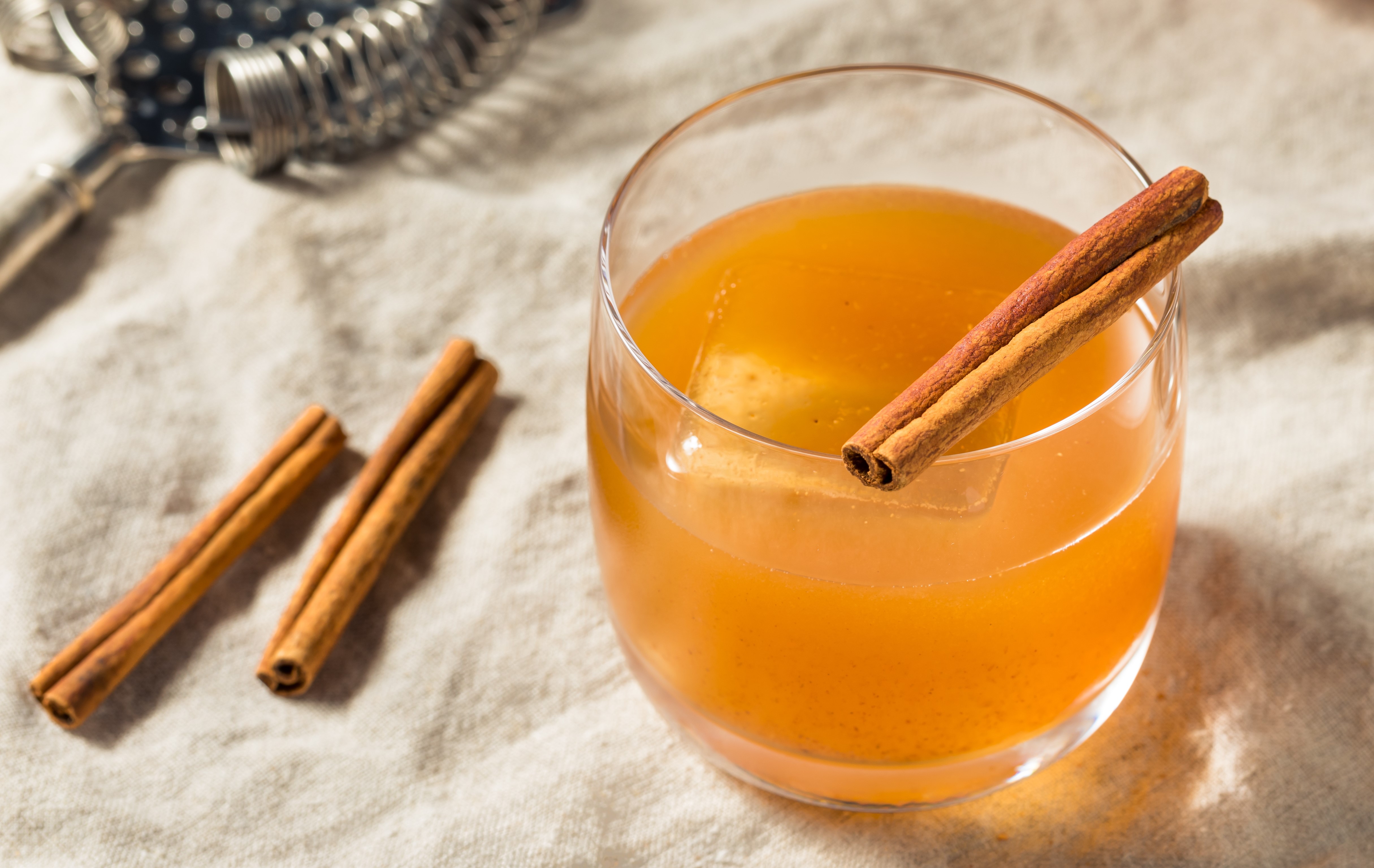 Combine all ingredients in an eggnog or highball glass and stir. Sprinkle cinnamon and nutmeg over the top.