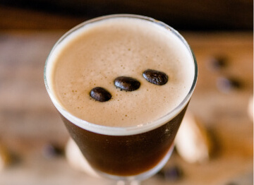 Shake vigorously and strain into a martini glass. Garnish with three espresso beans.