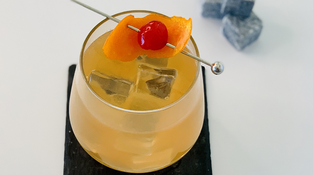 2. Strain into a coupe and garnish with three salted peanuts.